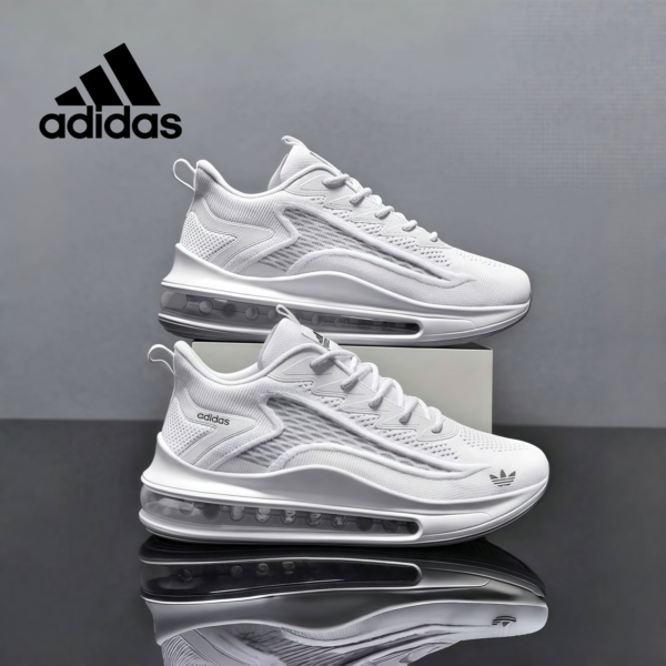 Designed for everyone, these unisex sneakers feature a clean all-white look with breathable mesh panels and bold air-cushion soles. Their modern silhouette makes them versatile enough for both sporty and casual outfits.